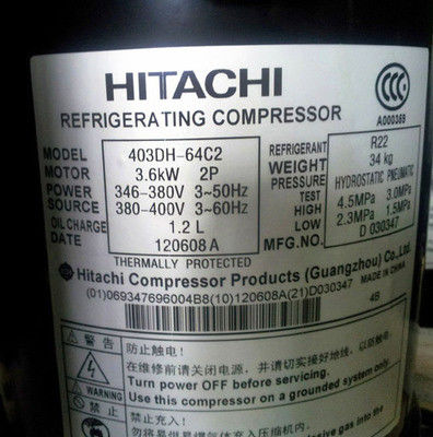Συμπιεστής κλιματιστικών μηχανημάτων ψύξης κυλίνδρων 403DH-64C2 Hitachi